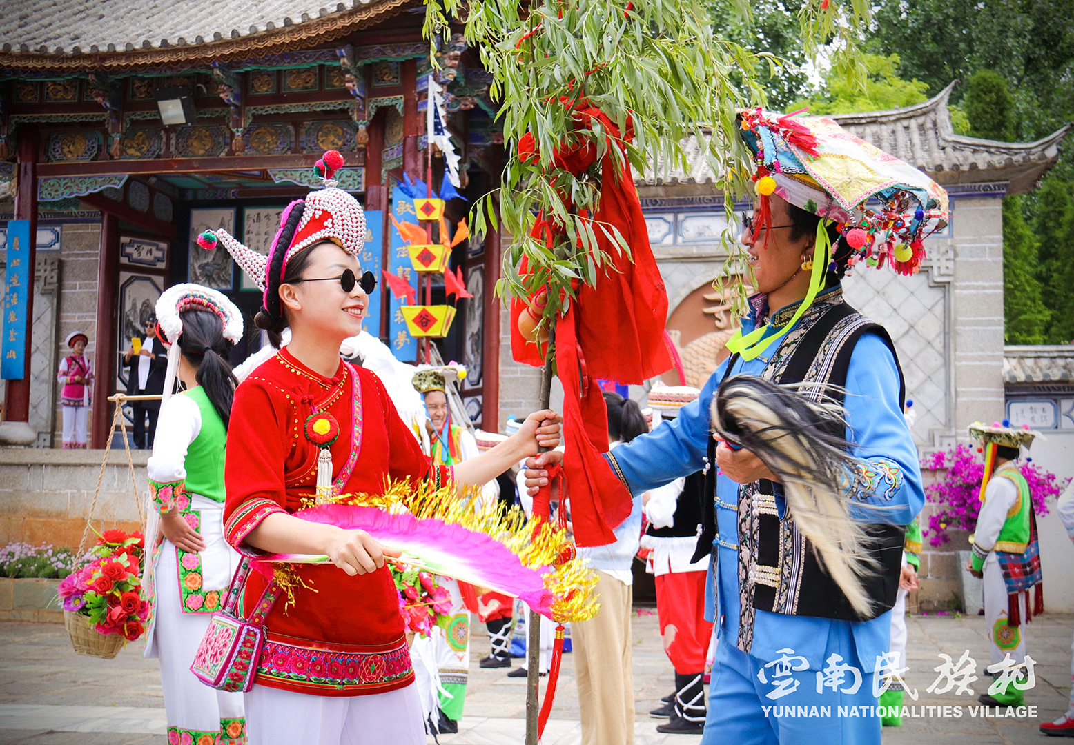彝族在云南境內(nèi)約471萬人,是省內(nèi)人口最多、分布最廣的少數(shù)民族,主要聚居在金沙江、元江流域和哀牢山、無量山腹地。彝族是一個(gè)能歌善舞的民族,民間打歌、跳樂之風(fēng)盛行,大三弦、跌腳舞久負(fù)盛名。火把節(jié)是彝族最具特色的民族節(jié)日。彝族村占地50余畝,三虎浮雕墻與虎頭內(nèi)祖師形象表現(xiàn)了彝族虎鷹文化。太陽歷廣場圖騰柱上有太陽、虎、火和八卦圖形象,周圍環(huán)繞著10個(gè)朝向不同的月球造型,外圓周有12生肖石雕。依山而建的“...